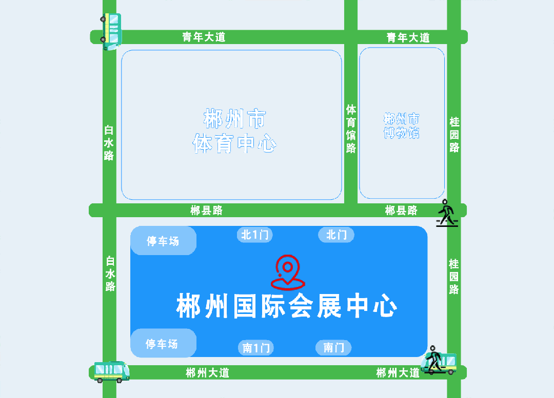 市國際會展中心南:13路 13路觀山洞專線 21路 27路 36路 38路 39路 56路/K56路 59路 201路郴州國際會展中心:假日文旅公交專線市國際會展中心北:22路/K22路 108路 817路 861路 872路 874路