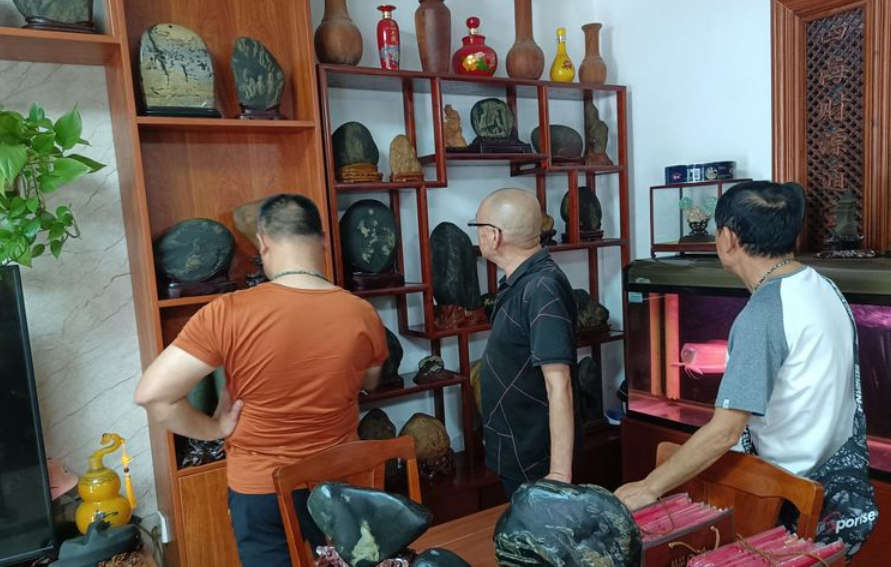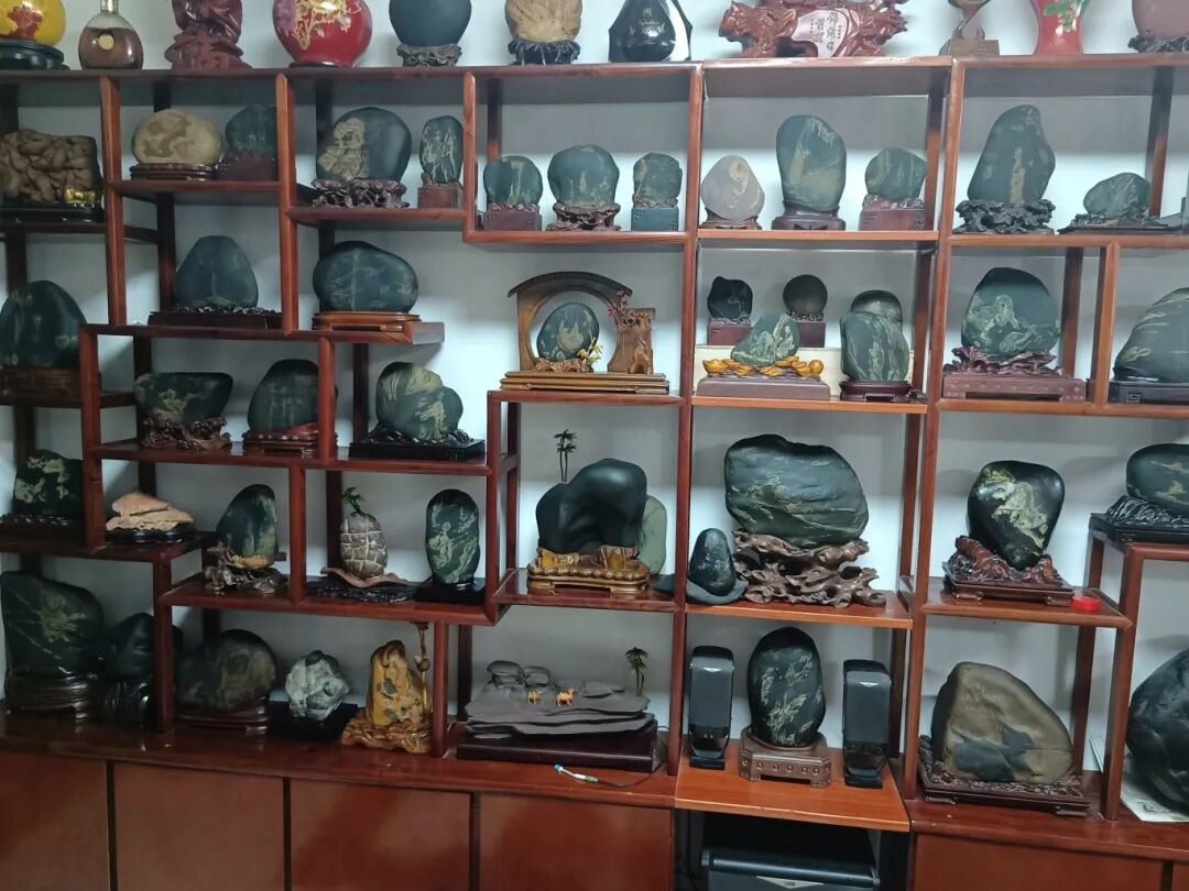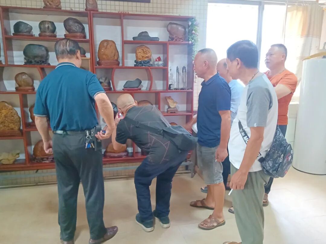 翁會長石館精品之多、石韻之美,讓人心潮澎湃;一屋皆為寶貝,滿室熠熠生輝。郴州市觀賞石寶玉石協(xié)會雅石專委會一行懷著興奮與貪婪的心情盡情欣賞,贊嘆之聲此起彼伏,不時各抒己見,現(xiàn)場氣氛祥和且溫馨。