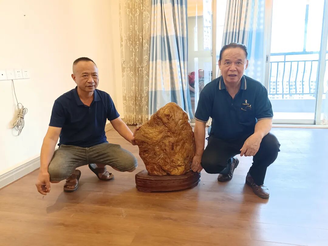 唐老師已是74歲老人,為給生活做減法,欲低價處理水沖奇石。郴州市觀賞石寶玉石協(xié)會雅石專委會一行當即采購了十余塊石頭;曹會長鑒于本人石館升級,選定了一塊100多斤的黃臘石,劉秘書則覓得一個人頭像的試金石。