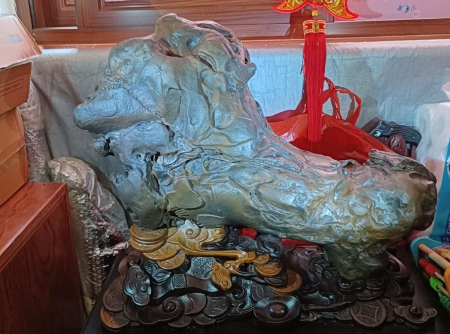 唐老師特別向我們介紹他的鎮(zhèn)宅寶物——貔貅。該石石質(zhì)堅硬、造型逼真、比例合適,似天工造物。此石獲過大獎、上過書刊、做過郵票,是唐老師心中最愛。