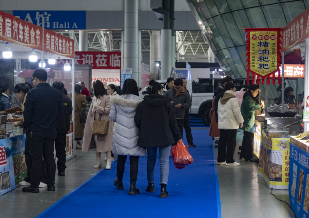 車展與本土美食小吃碰撞結(jié)合,春節(jié)干貨、地道美食、農(nóng)產(chǎn)品展銷等展位齊聚一堂,市民群眾不僅在現(xiàn)場可以品嘗到小吃美食,還能購年貨、品年味,感受濃濃的年味和“煙火氣”。